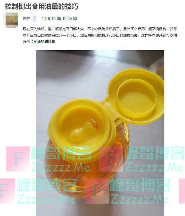 于是他们建议抠友新买的油千万别急着拉开环,而是在拉环连接处剪个小口,用量以滴来计算,实现榨干每一滴油的价值!