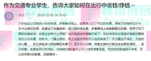 多看看地上或者翻翻......垃圾桶?大家别误会!这并不是叫你去捡垃圾,是收集别人用过的地铁次卡、日卡之类的车票,反手卖给收藏爱好者赚回车费。
