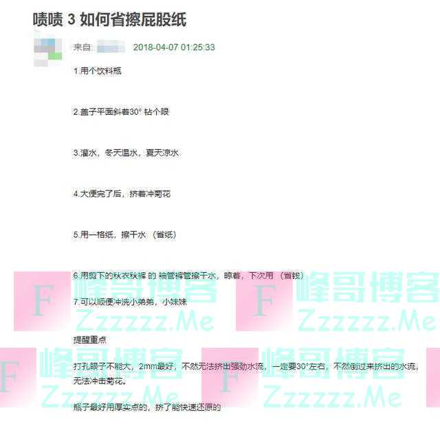 对于北方天气比较冷的小伙伴,这个抠友还很贴心的建议加温水或者白天放在太阳底下晒热,这样洗的时候不会菊花着凉。