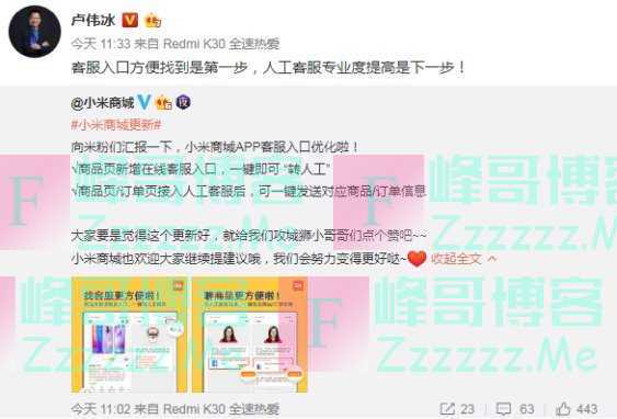 卢伟冰对此表示,客服入口方便找到是第一步,人工客服专业度提高是下一步!