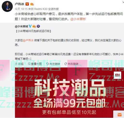 卢伟冰给力!小米商城试运行99元包邮》发布于2019-12-29