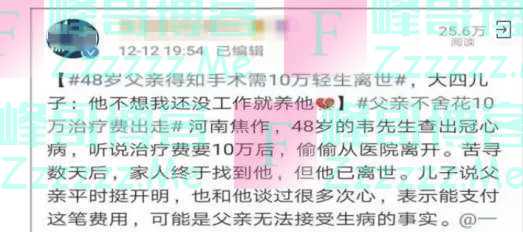 “10万手术费,将他逼上绝路”:医院,撕开了成年人最后的体面》发布于2019-12-30