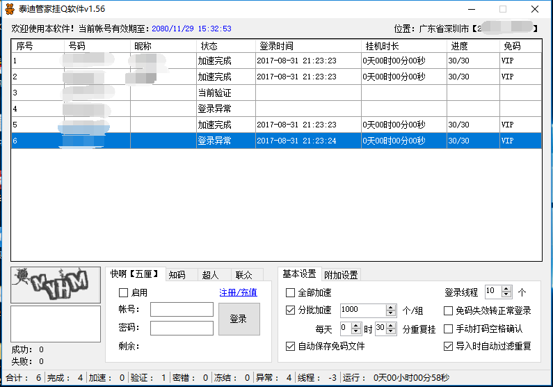 登录异常的多登录几次即可!QQ导入格式:123456----123456,软件打入随意账号即可登录。