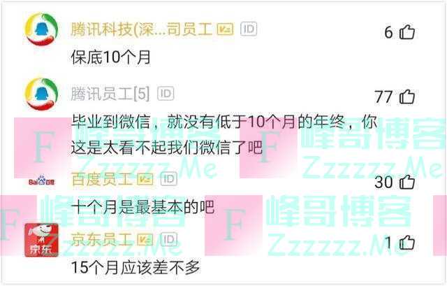 而对于10个月的说法,有腾讯员工则表示,10个月是保底的说法。更有腾讯员工表示,从毕业后到微信,就没有过低于10个月的年终奖……