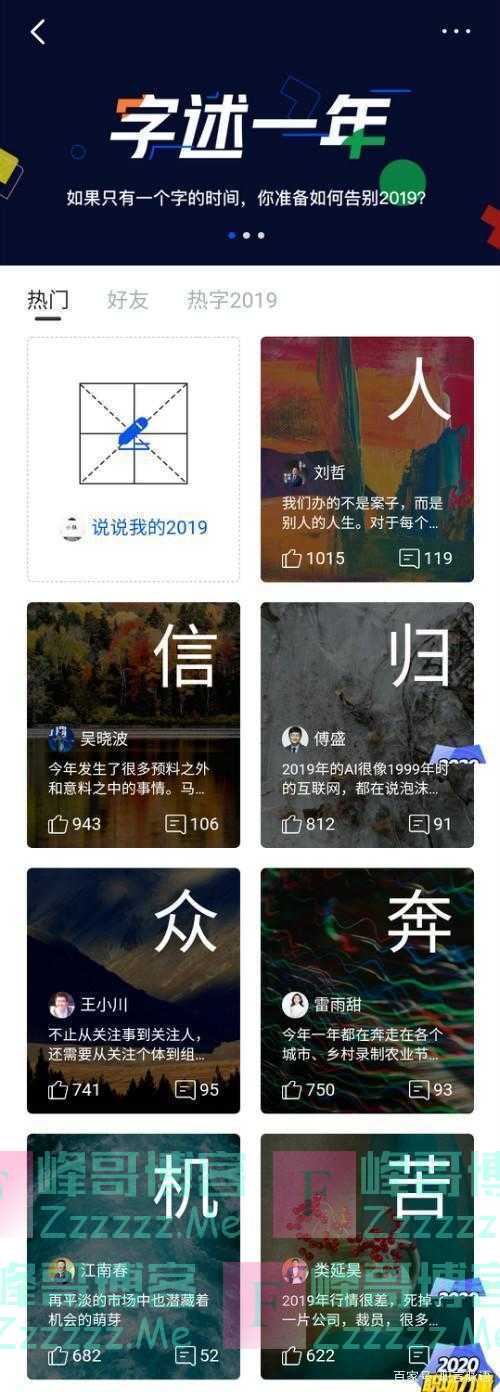 打开脉脉,参与"字述一年2019"活动,看看职场大佬们都是怎么总结2019的,或许能给你一些灵感!