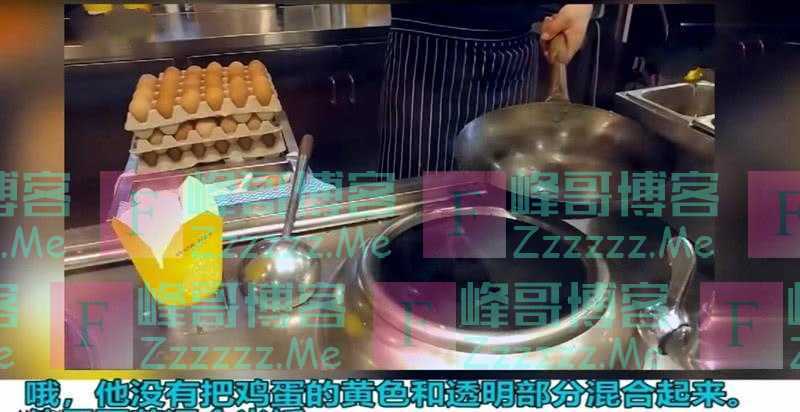 接着就要开始炒制鸡蛋了,就是很简单地磕了两个鸡蛋,然后放入锅中进行炒制。而评论区里很多外国网友对此就感到有点无法理解了,在他们的感觉中,鸡蛋黄和鸡蛋清应该先在容器中打散,然后才能放在油里炒制,而视频里的中国厨师,就是直接把鸡蛋磕在了锅里。中国烹饪技艺的高明之处,就是没有什么绝对的量化的操作,比如说“盐适量”、“味精少许”,这对于欧美国家的厨房人士来说,是感到不能理解的,他们有时做菜时所用到的调料,甚至要用专门的量具称好重量。烹饪手法过于简陋,所以只能在别的地方多讲究一些,就比如这里的鸡蛋,他们认为要先将蛋黄和蛋清打散,对于中国厨师来说,这是多此一举。
