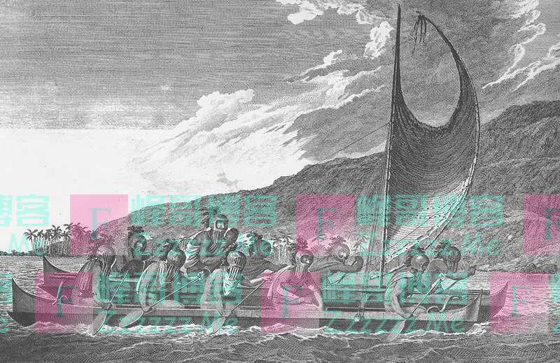 库克船队的一位画家到达夏威夷时就画了一幅画波利尼西亚人双壳独木舟的图像