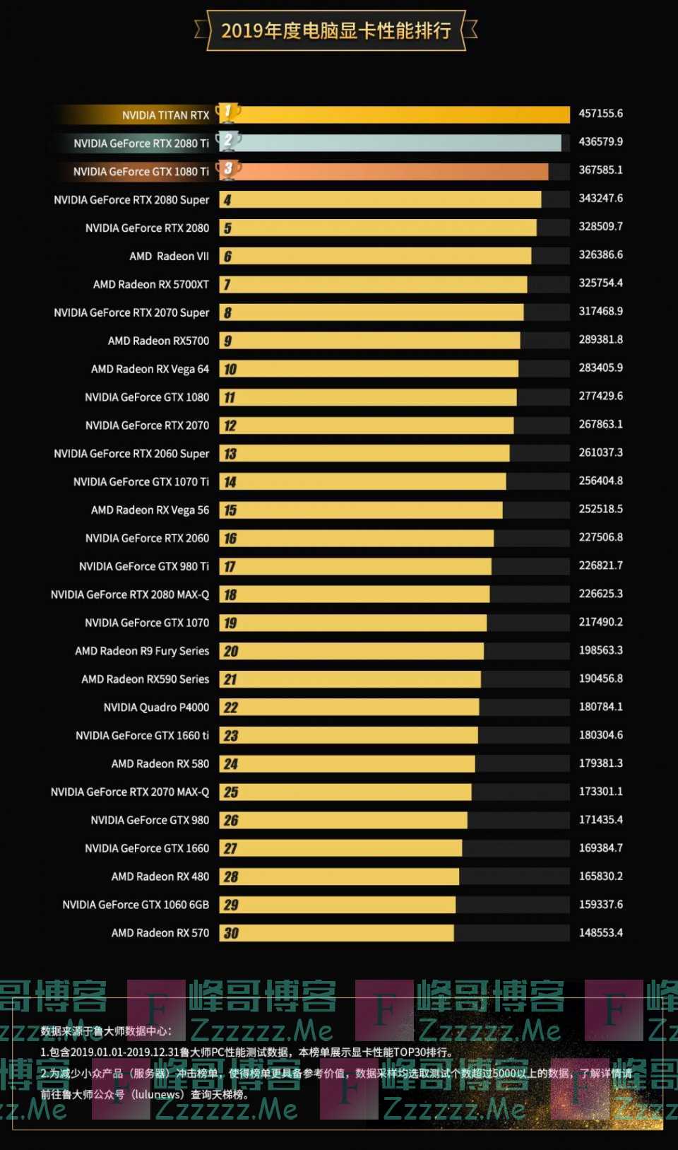 显卡性能榜排行数据来源于2019.01.01-2019.12.31,为减少小众产品(服务器)冲击榜单,使得榜单更具备参考价值,数据采样均选取测试个数超过5000以上的数据。