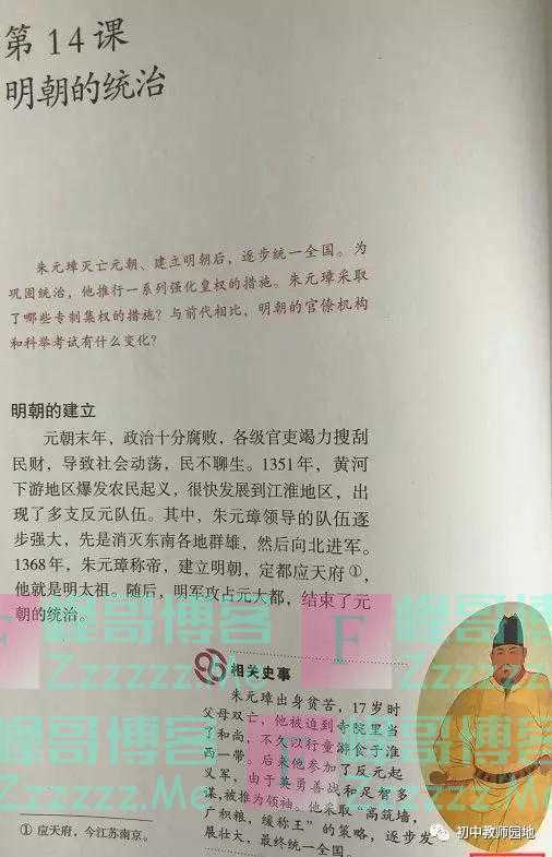 4、P66配图文字“朱元璋像”改为“明太祖像”。