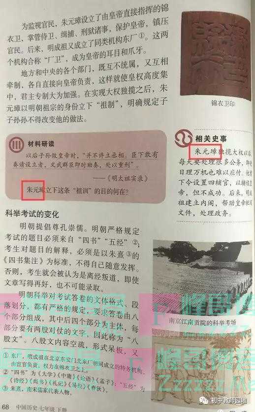 1、P68“材料研读”“相关史事”中的“朱元璋”改为“明太祖”。