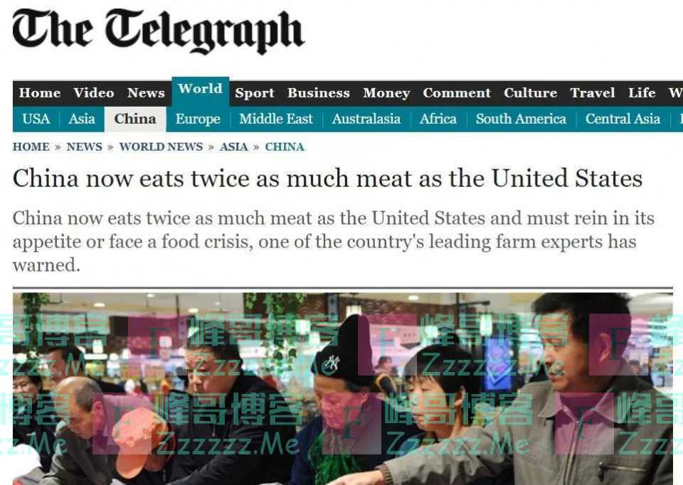 英国《每日电讯报》这篇报道的标题,就叫“中国人吃肉量是美国2倍了”。