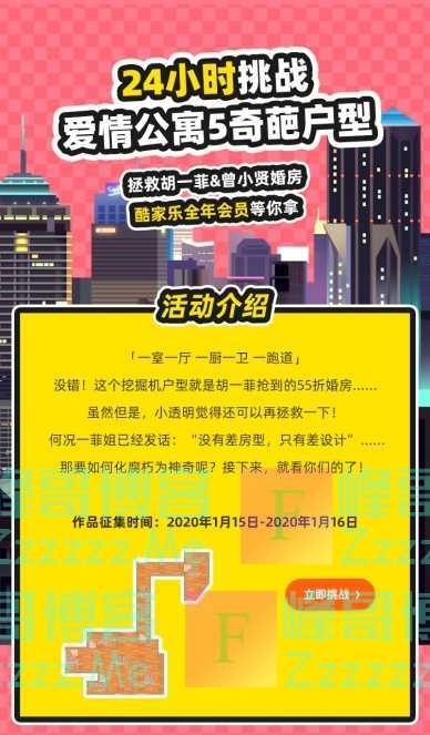 酷家乐资深平台运营烟澍很快关注到了“爱5”粉丝的呼唤,她笑称,“用户的需求是设计师的极大动力。在我们过往的运作中,酷家乐设计师攻克过不少奇葩户型。”而为了“拯救”剧中男女主角胡一菲和曾小贤的婚房,酷家乐决定顺应民心,落地一场面向广大设计师的“24小时挑战爱情公寓5奇葩户型”大赛!