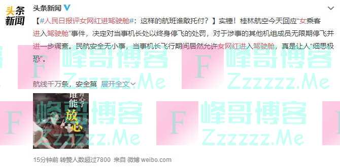 还记得进飞机驾驶舱的网红空姐么?人民日报关注了,然后凉了一大波人。