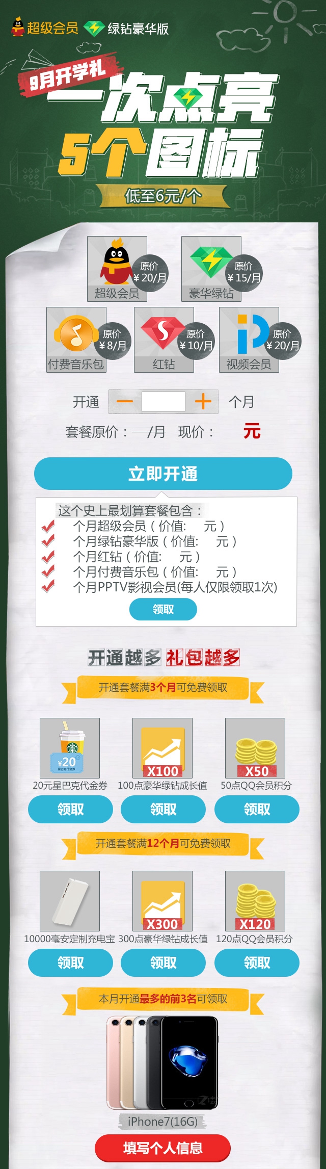 30元开1个月超级会员+豪华绿钻+付费音乐包+红钻+PPTV会员(微众银行卡付款仅需3.4)》发布于2017-9-17
