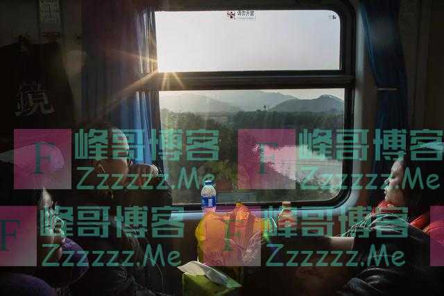 硬卧的乘客,睡眼惺忪坐在窗边。