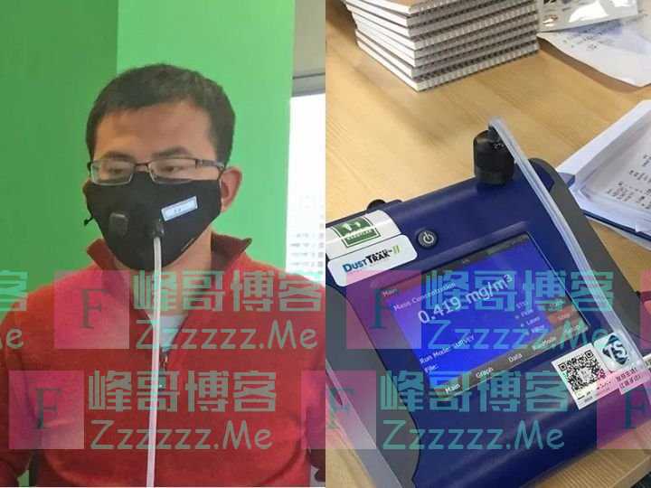 先在口罩上穿孔,用中空的塑料件密封,外接的长硅胶管可以直接导出内部的空气,由测试人员参考使用说明穿戴后,进入PM2.5浓度400ug/m3以上的房间。