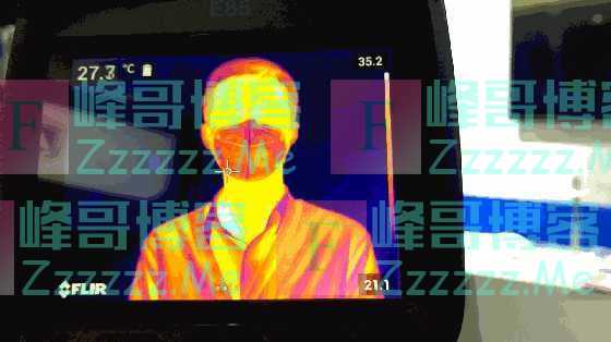 好的口罩,整个口罩覆盖区域温度都是一致的,在热成像的图像上看到口罩的区域颜色均一,且边缘清晰。随着呼吸变化,温度会整体变动,空气是均匀的吸入和排出的,比如下面的兴研和重松。