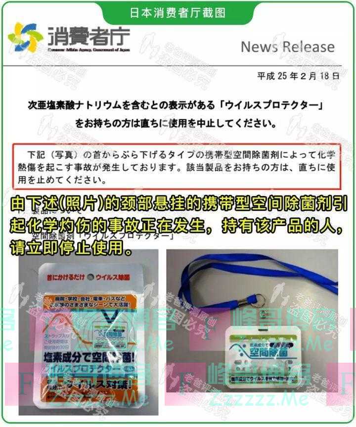 其实早在 2013 年,日本就曝出过含氯空间除菌剂的问题。
