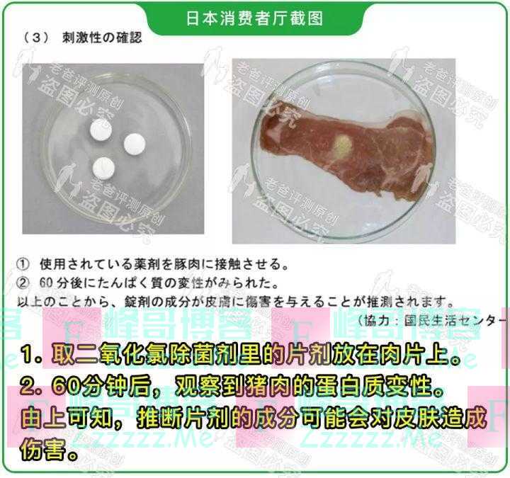 日本消费者厅还用猪肉片模拟皮肤,做了刺激性确认的实验。
