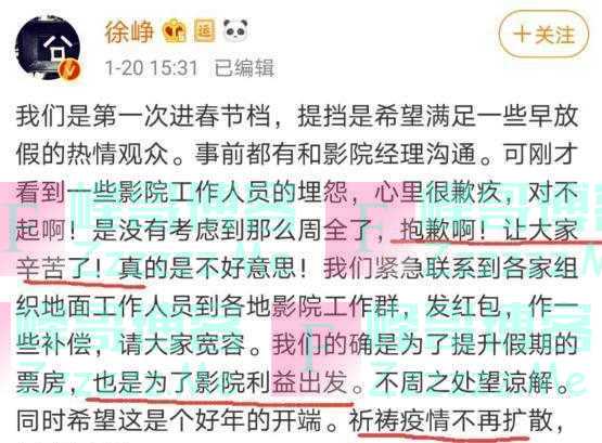 错误在先,如果徐峥能够在撤档一事中第一个站出来表态,可以在一定程度上减缓观众的怨声,但结果呢,徐峥的撤档说明比《姜子牙》整整晚了一个多小时!