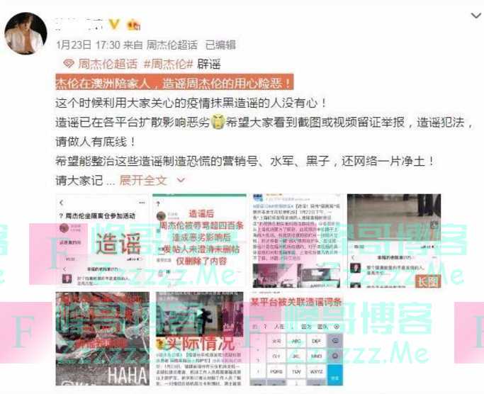 随后,周杰伦粉丝团发表辟谣文章,称周杰伦仍在澳洲陪家人,造谣者用心险恶……
