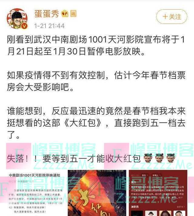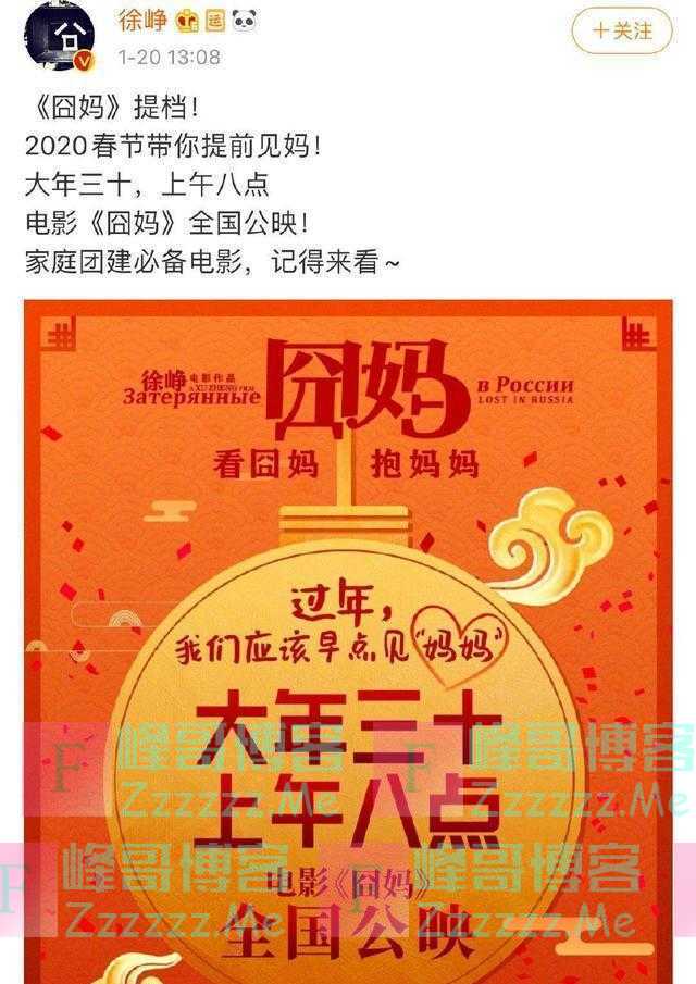 徐峥提档没用?受疫情影响,春节档暂停放映,春节档电影改档五一》发布于2020-1-24
