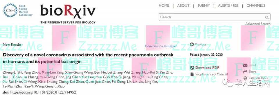 2020年1月23日,中国科学院武汉病毒研究所石正丽团队在bioRxiv预印版平台上发表文章,报道了武汉新型冠状病毒nCoV-2019。
