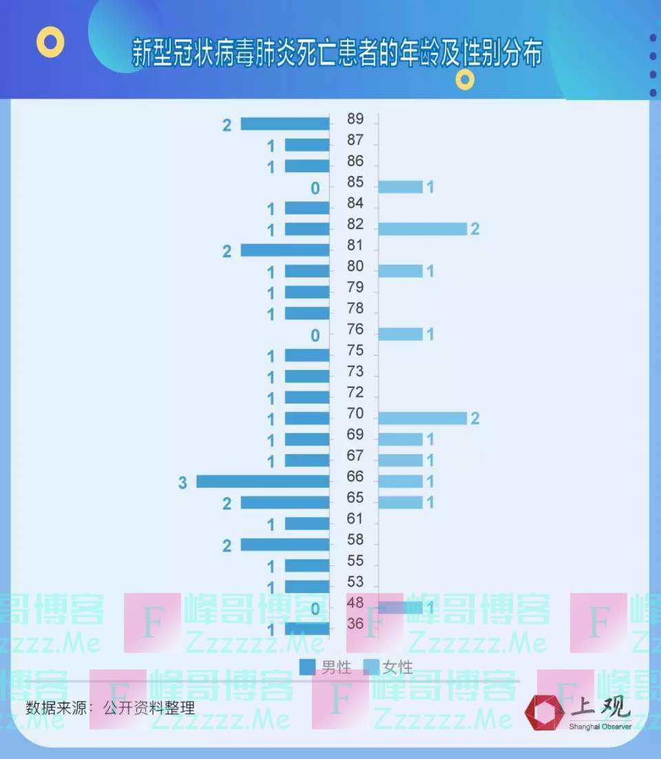 死亡患者的年龄普遍偏大,有35人都在60岁以上,年龄中位数为70岁,但年龄最小者仅36岁。10人患有基础疾病,包括高血压、糖尿病、冠心病、帕金森综合症。老年人伴随慢性病史,使得他们面对病毒时格外脆弱。