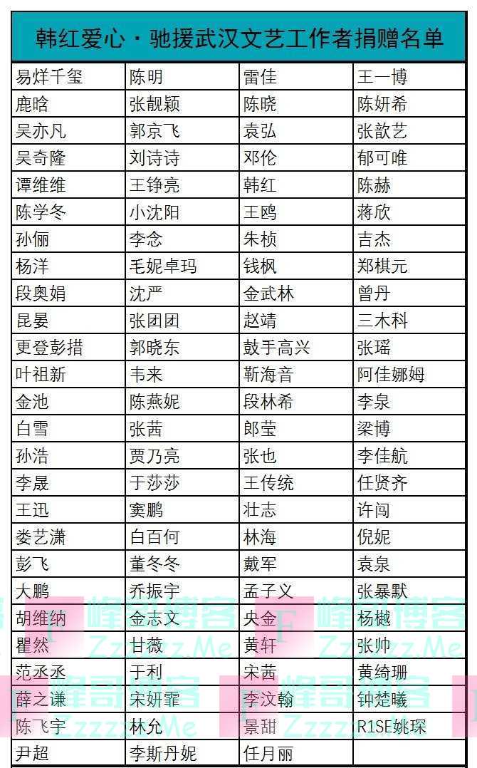 韩红更新武汉捐款名单,演员、歌手一个都不少,这两人捐款遭炮轰》发布于2020-1-27
