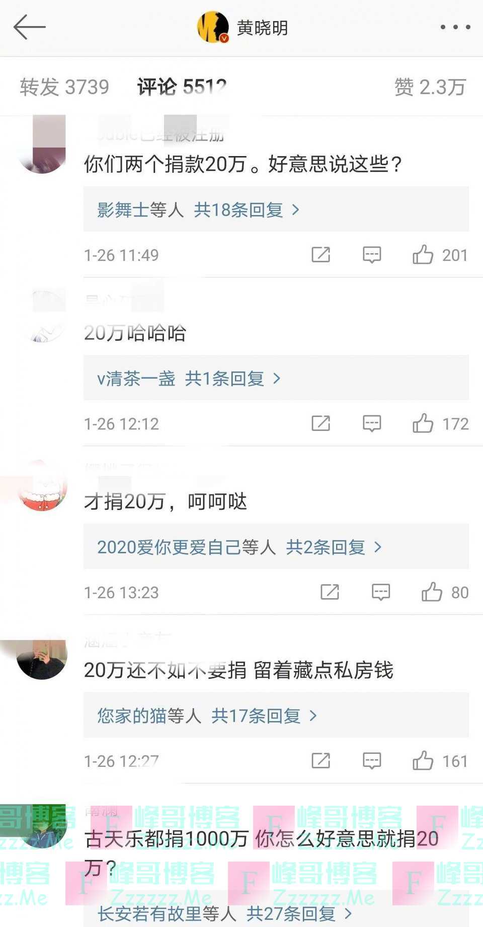 可现在对于古天乐捐款一事已经被官方辟谣了,很多理性网友也站在了黄晓明和Angelababy这边,认为捐款的多少完全是自愿,这并不是强迫,如果只因为捐款少就遭到炮轰这完全就是“道德绑架”,甚至部分网友直言:那些炮轰明星捐款少的人,你们是否有为这次武汉的疫情捐款呢?