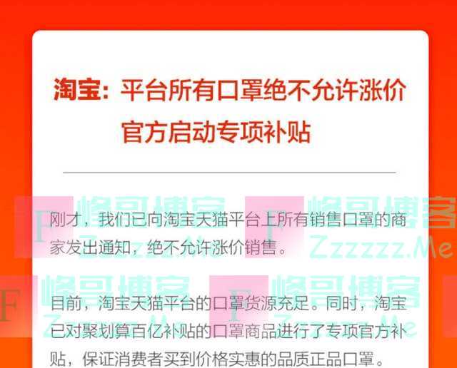 物以稀为贵,常见的口罩沦为稀缺物资,又恰逢春节期间,价格适度上涨也无可厚非。不过,正如环球时报总编辑胡锡痛批“天价口罩”所述,平时不到十块钱的一包口罩今天卖到了50块钱,当下这个关口把口罩卖高价就是发“国难财”,趁机坐地起价,危难之际趁火打劫的大肆敛财行径,必然将激起众怒民愤。值得欣慰的是,除了勇敢工作在一线的白衣天使们,不少大公司也在危难之际伸出援手,其中,身为国内第一的互联网电商龙头阿里巴巴就率先发声,发布公告公开表示,明确要求淘宝天猫平台所有销售口罩的商家,不允许涨价,且推出专项补贴,尽全力保证人人都能买到平价口罩。