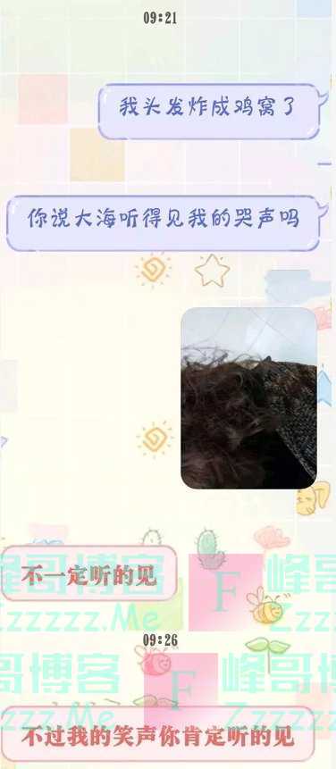 女生跟男生说头发成鸡窝了,你说大海能听见我哭的声音吗?