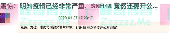 没常识?武汉肺炎蔓延网传SNH48却要公演!众女星被迫到场跳舞》发布于2020-1-29