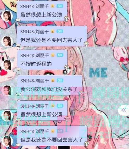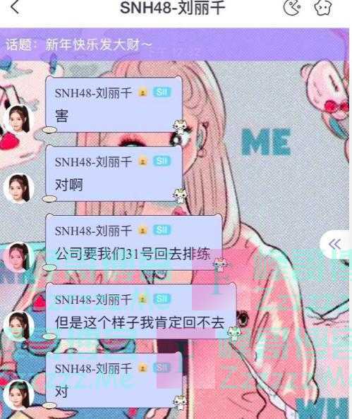 在晒出的截图中,SNH48成员刘丽千在粉丝群里自曝经纪公司丝芭传媒要她们在31号回到上海去排练。