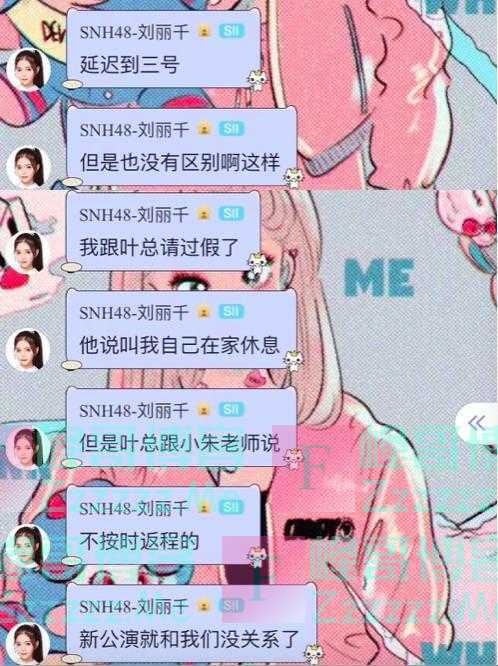 刘丽千随后表示自己已经请过假了,老板同意了自己的请求,还要刘丽千在家好好休息,结果转头老板就跟成员们的老师说,不按时返程的,新公演就和她们没有任何关系了。