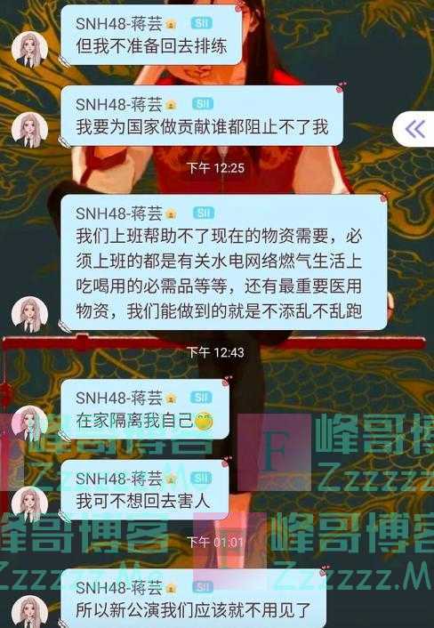同样放弃了参加这次新公演机会的还有蒋芸,蒋芸在接到通知后,选择在家自我隔离。在蒋芸看来,她们能做到的只有不添乱不乱跑,不出去害人。