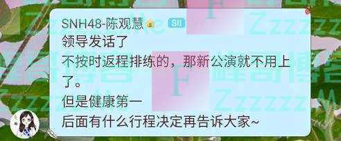刘丽千的队友陈观慧也明确地表示,领导说不按时返程排练的,那新公演就不用上了。