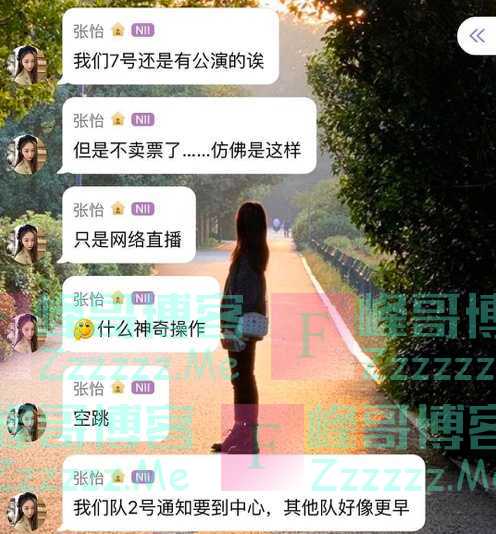 随后另一个成员张怡也在群里证实了这个消息,7号的公开演出不对外售票,观众通过网络直播观看,成员们就在舞台上空跳。