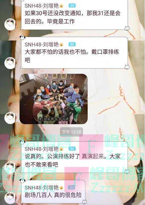 1月27日下午,有网友晒出了SNH48成员的几张聊天记录,称“明知疫情已经非常严重,SNH48 竟然还要开公演剧场?”