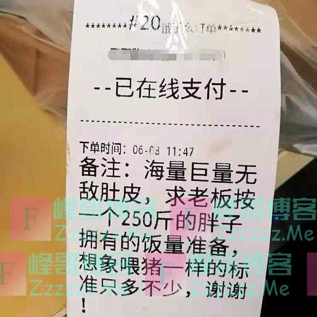 外卖是近几年才被发扬光大的一种服务性行业,市场大行业大竞争也大,因此,哪家的服务最到位就能站在行业链的顶端。但是,有时面对一些顾客备注的沙雕要求,还真挺让人心疼外卖小哥和老板的,例如这些笑到你“肩抖”的外卖备注……
