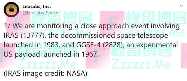 ▲IRAS卫星以及LeoLabs的警告