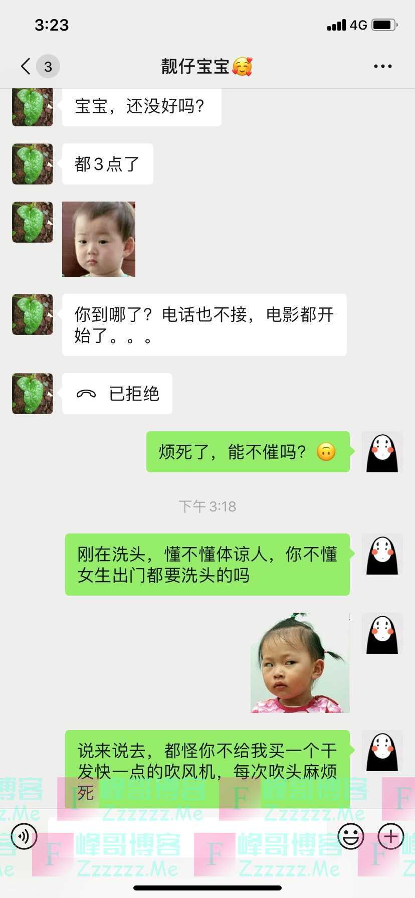 就拿上周看电影的事儿来说,本来说好下午早点出发看电影,结果电影开场了她还没到。因为这事,小编还被女友说不够体谅她,没买个给力一点吹风机送她,所以她吹头发才那么慢。听完,小编顿时一口老血喷出来:为了吵架这种歪理都能想出来?!