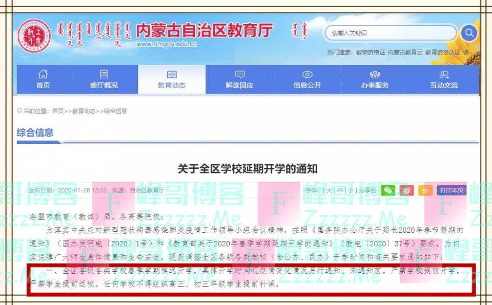 甘肃:1月31日发文,全省大中小学延迟至3月1日以后开学,不得提前开学及组织补课。