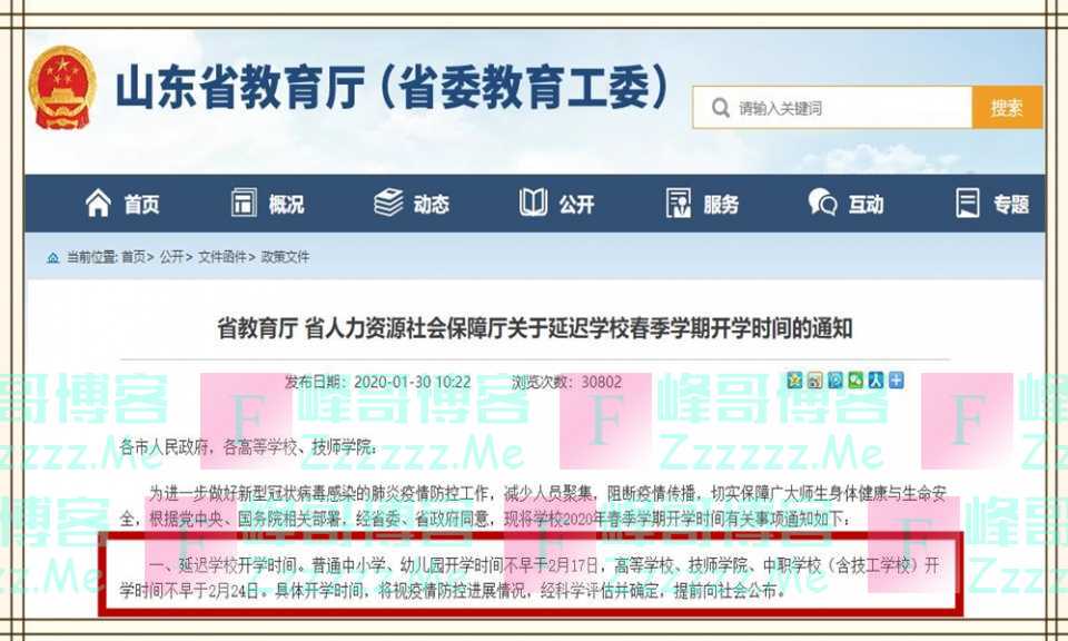 山东:省内中小学及幼儿园不得早于2月17日开学,同时中小学2月9日开启网络教学;大学、大专、中职及技校不得早于2月24日开学。