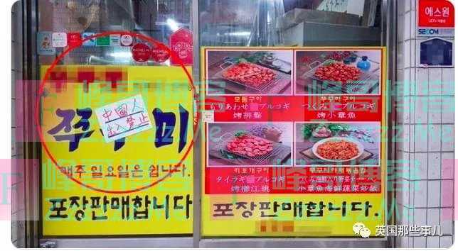 在韩国,一些商户开始拒绝接待中国游客,并且店门口用中文写上:中国人出入禁止。