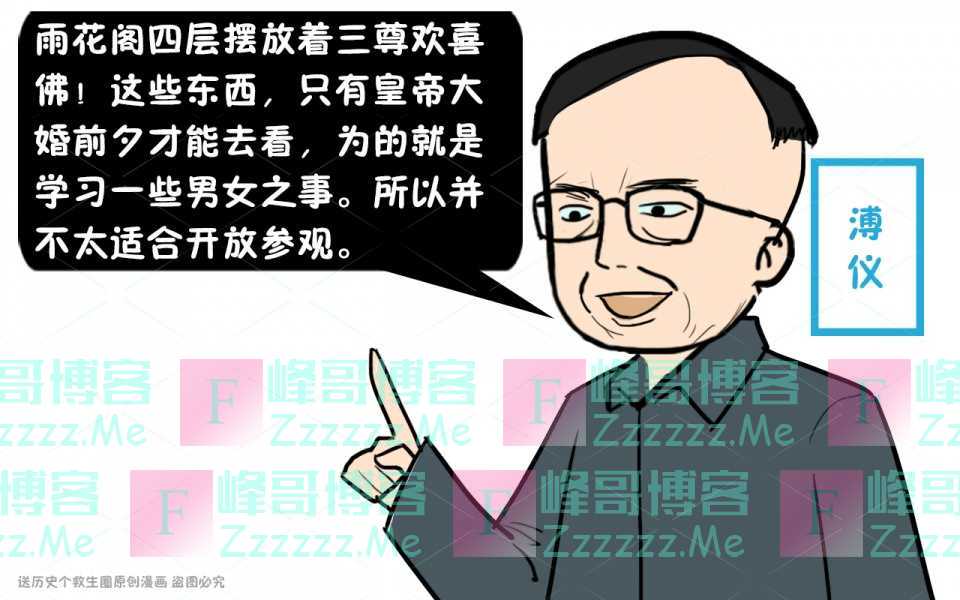 溥仪说:“最主要的原因是,雨花阁四层摆放着三尊欢喜佛。这些东西,只有皇帝大婚前夕才能去看,为的就是学习一些男女之事。所以并不太适合开放参观。”在场的人听完溥仪的话,瞬间脸上泛起了红晕。导游本来想和溥仪辩驳两句,但溥仪说完就走了,也没有给她辩驳的机会。那溥仪又是如何知道的呢?别忘了,溥仪毕竟还当过两天皇帝。在他与婉容大婚时,曾被太监领着来过这个地方。所以对里面很清楚。