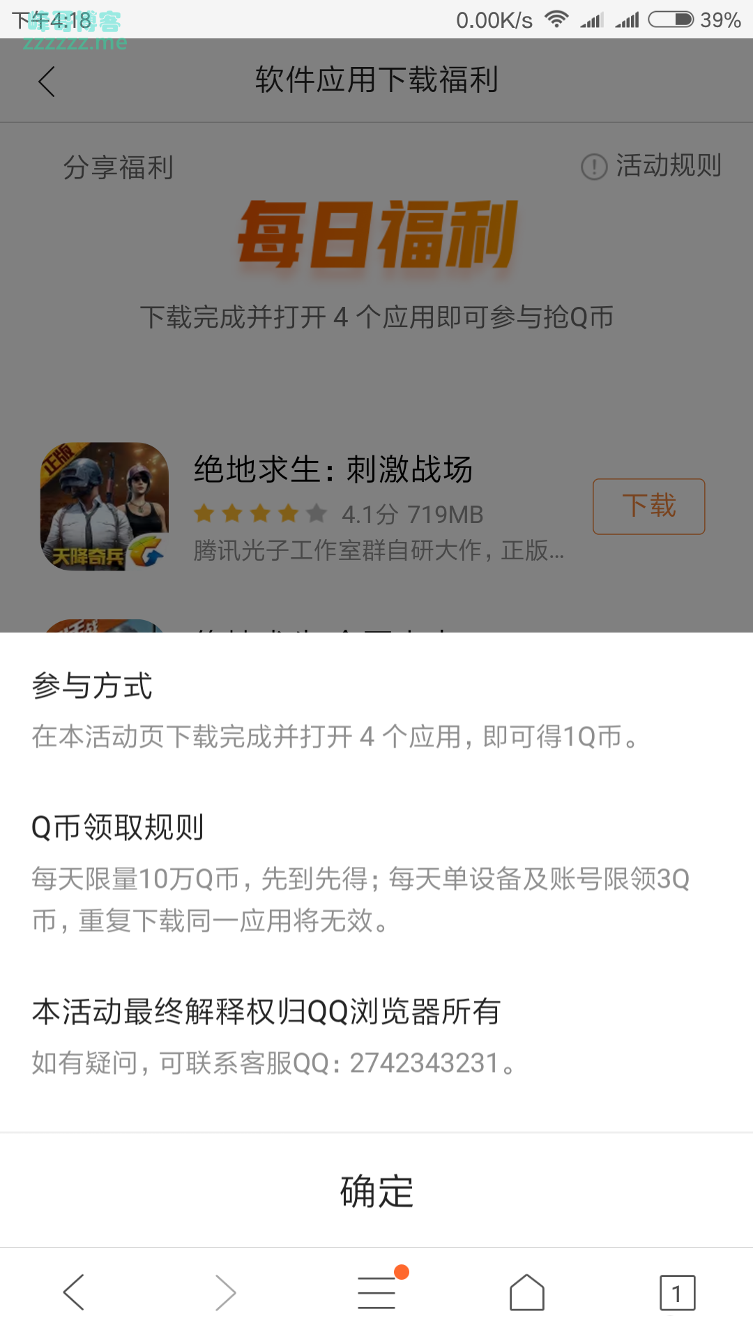 QQ浏览器每天领取3个Q币秒到!每天限量10W》发布于2018-6-27