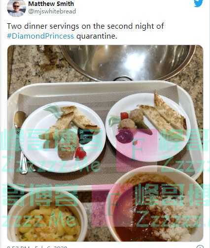 因新型冠状病毒而被隔离游轮上的一名男子发布推文评价食物