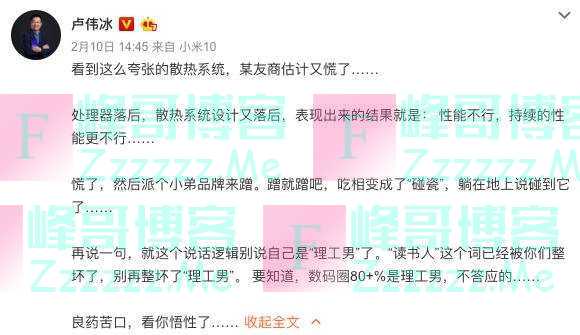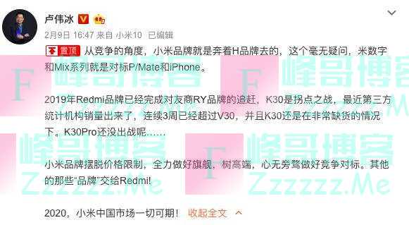 卢伟冰再声明坦言没有删博:今日关于小米10还有大招放!》发布于2020-2-11