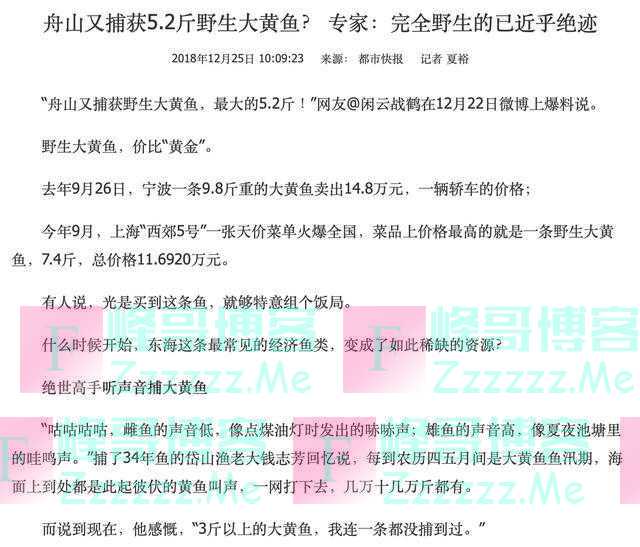 除了食用安全,环境污染、过度捕捞和炫耀消费也已经导致我国很多海洋物种濒临灭绝,甚至消失,比如海马、鲎、长江白鲟,还有我们以前餐桌上常出现的野生大黄鱼。现在在市场卖的大黄鱼都是人工养殖的,多年近亲繁殖,种质早已退化,生长变慢、个头变小、肉质变差。几乎灭绝的野生大黄鱼成了珍品,价比“黄金”。